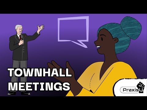 Town halls are public meetings that are open to everyone. People are invited to ask questions, and say what they think about specific problems or policies. Going to a town hall is a great way to let the government know in-person about the problems that matter to you.